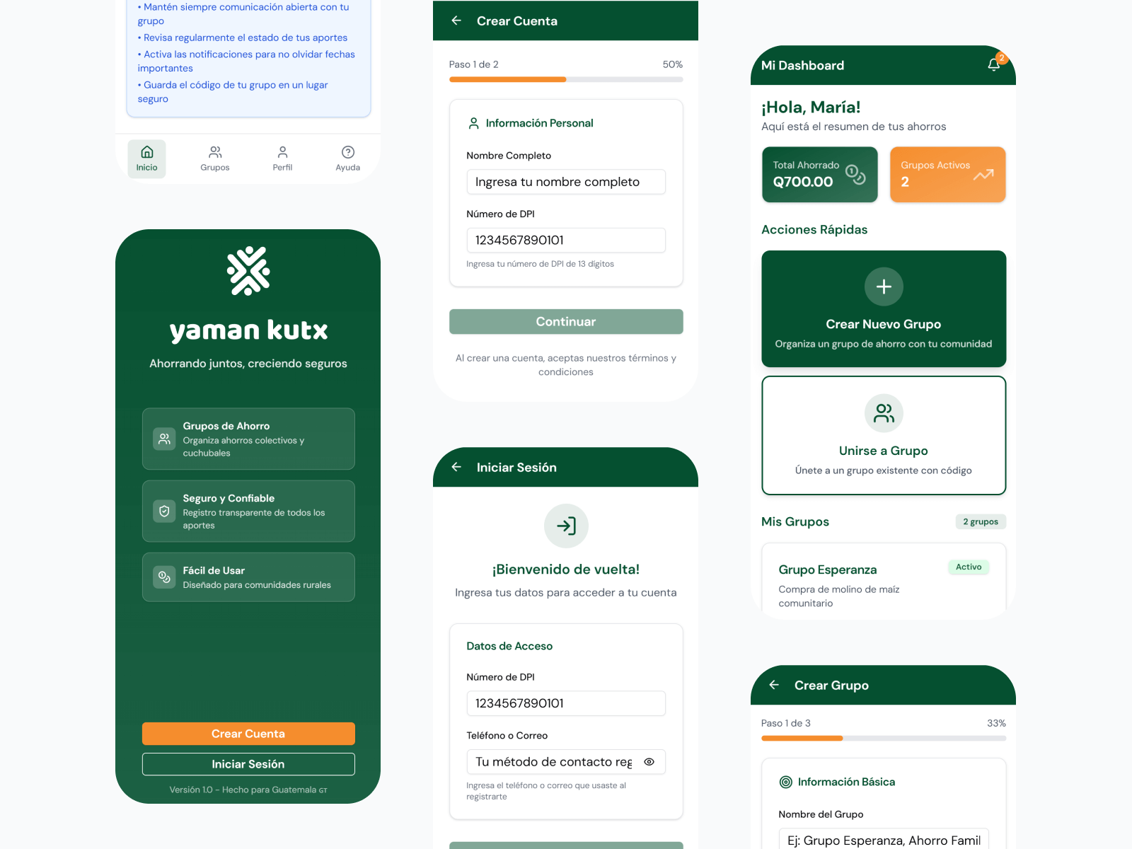 Yaman Kutx is designed for individuals from rural and semi-urban communities in Jacaltenango, Huehuetenango who participate in collective savings groups, known locally as mutual aid. This audience typically has limited access to formal financial services and varying levels of digital literacy.